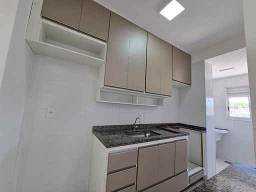 Área útil com 54,26m², no 6° andar, composto por 02 Dormitórios, sendo uma suíte com closet, sala de estar com sacada, sala de jantar, cozinha repleta de armários, área de serviço, 01 banheiro social e suíte com gabinete, apartamento revestido todo em porcelanato, janelas e sacada com tela de proteção.